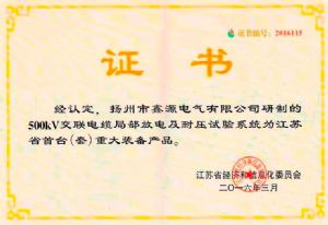 一種新型試驗電源設備上用倍壓塔-發(fā)明專利證書